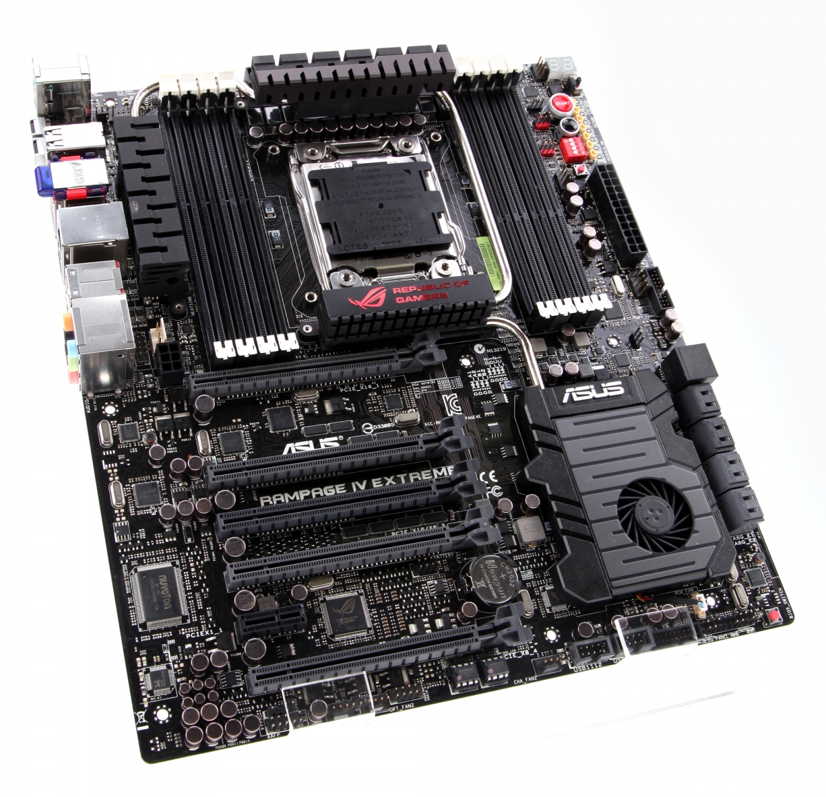 ROG Rampage IV Extreme Black имеет на борту 8 слотов под планки DDR3 DIMM, поддерживая установку до 64 Гб оперативной памяти. В плату можно установить тандем из четырех 3D-карт в режим
