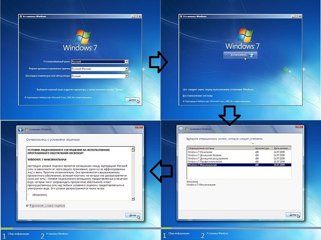 Выбираем язык системы => => Установить => ОС => принимаем пользовательское соглашение.