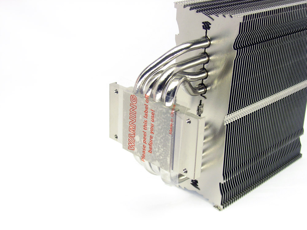 Сам радиатор - это набор из 47 алюминиевых пластин, которые установлены с наложением на 2 мм расстоянии друг от друга. Пластина сбоку оформленна очень интересно фирменным логотипом с эффектом клыков.