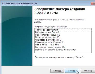 Программа рапортует, об успешном выполнении задания и мы, с благодарностью нажимаем «Готово». Теперь, перезагрузив компьютер, мы можем увидеть созданный диск, или диски, в проводнике и начать работать с ними.