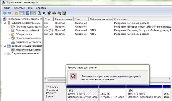 В окне «Размер сжимаемого пространства» вписываем количество мегабайт, необходимых нам для создания дополнительного раздела. При этом исходим из того, что для диска С: нам необходимо оставить 100 – 120 GB (о том, как рационально распределить место на диске, мы говорили в предыдущей статье).
